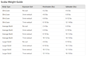This grid serves as a starting point, and divers should perform buoyancy checks at the start of each dive to fine-tune their weights based on personal experience and conditions.
